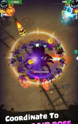 成群的丧尸已经蠢蠢欲动。大战一触即发!你需要和同伴搭配,一起抵抗入侵城市的丧尸群。在收割的同时收获更多金币来提升你的武器。
