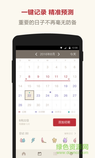 4.轻松记录:简单的一个按钮操作,即可轻松记录月经日期