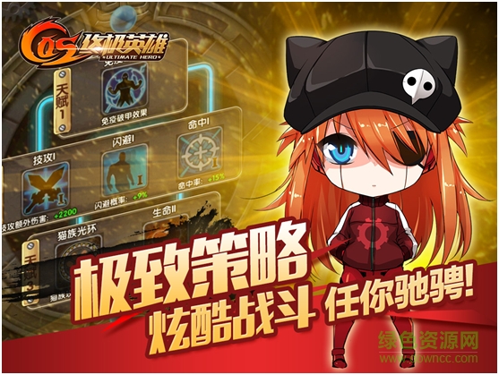 cos超级英雄手游是一款对战策略网游,二次元的背景风格搭配打击感十足的战斗画面深受广大玩家们喜爱,感兴趣的朋友可以来绿色资源网下载哦!