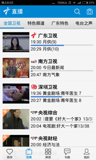 2.汇集全国卫视、珠三角特色频道、热门电台频道等直播内容,随时随地看电视
