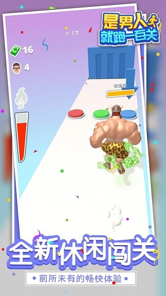 是男人就跑一百关,趣味跑酷闯关手游,游戏中你将操纵一个肌肉男在各种各样的赛道上进行趣味的跑酷玩法,游戏中拥有着大量的陷阱环境需要克服,玩法超级魔性,感兴趣的玩家可以下载体验!