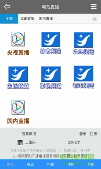 2.漯河广播电视台自己承办的电视节目,实现手机在线直播;及转播省台中央台节目方便当地群众在手机上观看电视节目。