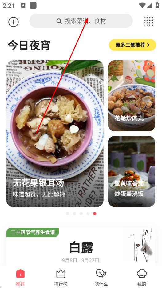 1、打开美食杰App,点击首页上方的搜索栏,输入想要查找的菜谱关键词。