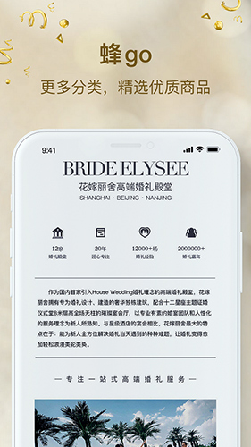提供婚纱摄影、婚纱礼服、婚礼策划、婚宴酒店等一系列服务的线上展示、线上预约、专人服务等,为你带来更多资讯,帮您打造美满的婚嫁体验。