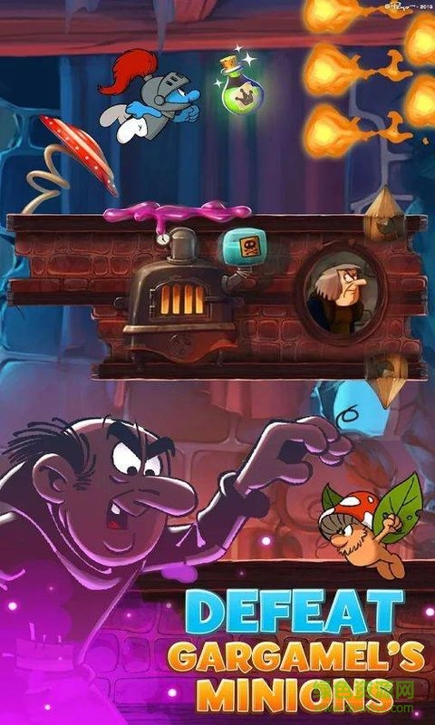 -玩你最喜欢的蓝精灵,包括Smurfette,蓝精灵爸爸,蓝精灵得心应手,格鲁希Smurf攻击和十几家其他的标志性人物!