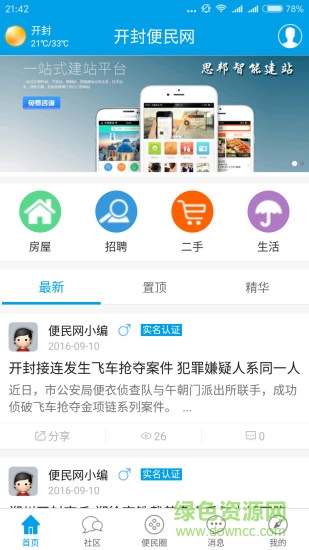 开封便民网app是开封当地的生活服务平台,涵盖了开封全面的信息分类,是一款较全面的开封一站式平台,在开封的朋友千万不能错过,实时掌握开封资讯,有需要的用户欢迎来绿色资源网下载!