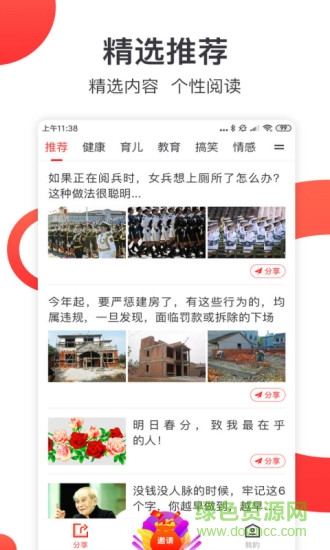 淘金阅读app是通过阅读赚钱的手机软件。用户可以在线阅读热点新闻,分享感兴趣的新闻资讯内容,你的每一次分享都可以获得相应的现金红包奖励!同时还可以通过邀请新人注册使用获得更多的奖励哦!快点来绿色资源网下载体验吧。