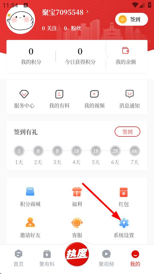 2、在个人页面中,找到并点击系统设置选项,进入设置界面。
