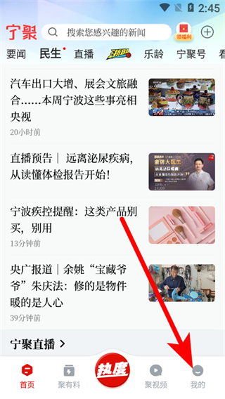 1、打开宁聚App,点击底部导航栏中的我的选项,进入个人页面。