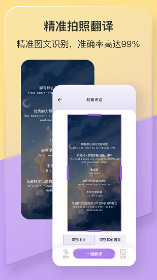 1.拍照翻译:精准OCR摄像头取词和拍照翻译功能,无需繁琐手动输入便可快速翻译英语。