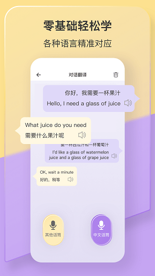 1、语音实时翻译到语音,支持中英互译即时播报。
