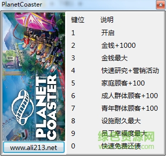 过山车之星修改器是针对同名pc游戏玩家提供的一款免费辅助工具,通过该软件可以修改游戏的某一程序及某一程序文件,轻松达到无限金钱、无限幸福度、无限家庭顾客等九项功能,需要的朋友欢迎来绿色资源网下载!