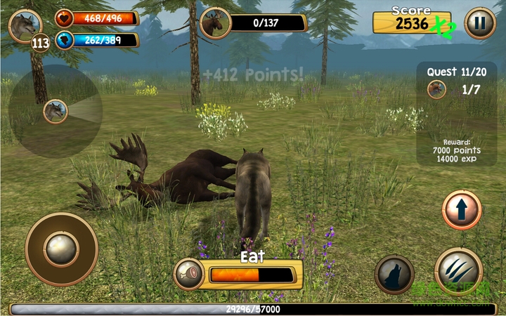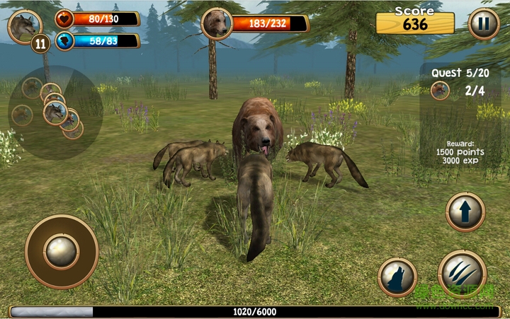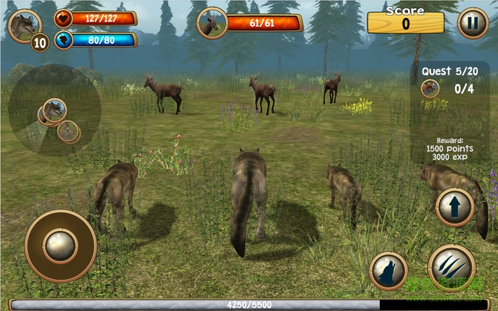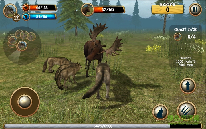 3、化身野狼在荒野生存,开始自己的狼的骄傲,争取你的生活对激烈的动物,如驼鹿,熊和狐狸。发展你成为最强的狼。