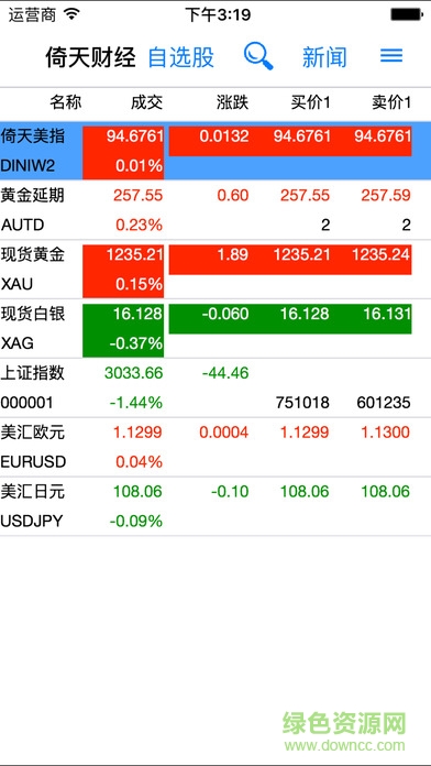 倚天财经行情软件苹果版是专为苹果手机用户准备的一款多功能的行情查看软件,能免费查看股票期货股指黄金外汇原油指数贵金属的金融分析指数,让你对市场随时了若指掌,绝对不错过任何一个投资机会,喜欢的朋友可以来绿色资源网下载!
