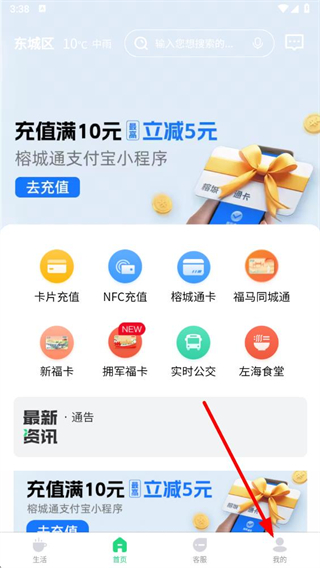 1、打开榕城通app,点击底部导航栏中的我的选项,进入个人相关页面。