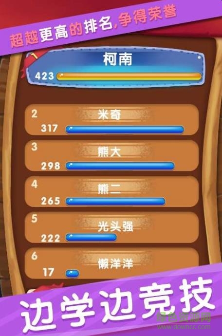2.竞技排行榜:紧张激烈的竞争场景、明确的目标、在竞技过程中趣味学习。