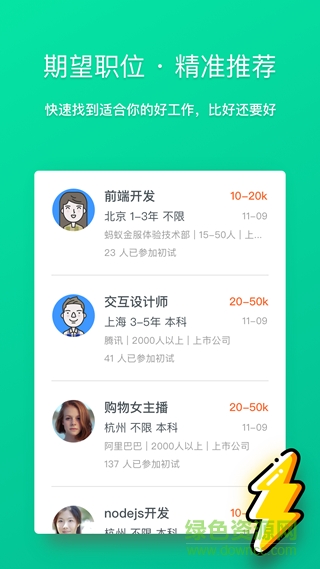 优优求帮您找到称心的职位,参加初试后直接与面试官沟通,当然还能看到评分排行哟。