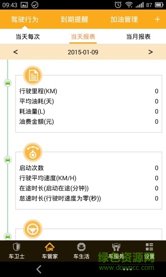 2.驾驶记录:记录车辆行驶次数、行驶里程、耗油量、消费金额,让车主用户清除自己每天驾车的情况;