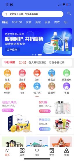 小鹿优购app是一款实时上新、价格亲民的省钱购物软件,一键即可快速搜索出自己想要购买的好物优惠券,爆款特惠赚取限时秒杀抢购,全场商品值得入手。