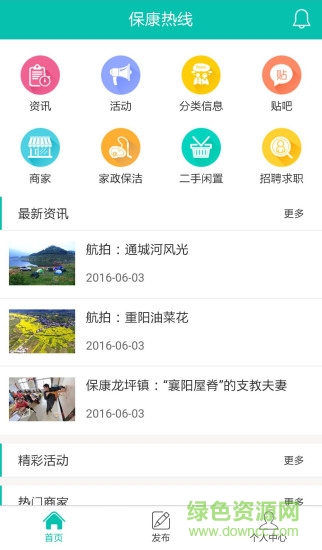 保康热线网app是保康当地的生活服务平台,有当地最新的新闻资讯,在保康当地的朋友可以随时随地实时掌握当地热门话题,关心居民生活服务,同城信息一手掌握,有需要的用户欢迎来绿色资源网下载!
