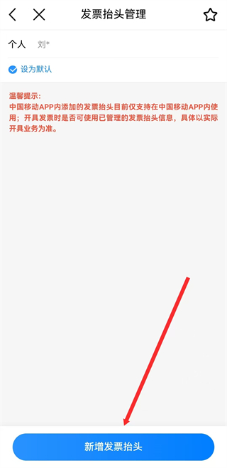 4、在发票抬头管理界面,点击新增发票抬头按钮,按提示填写信息完成发票抬头设置。