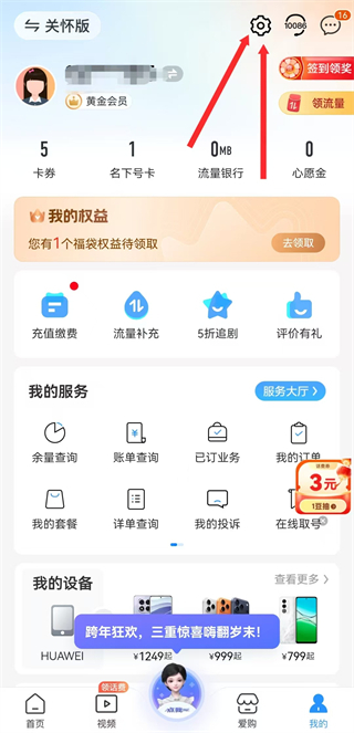 2、在我的界面右上角,找到设置按钮并点击,进入设置相关的操作页面。