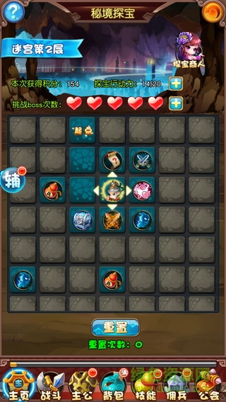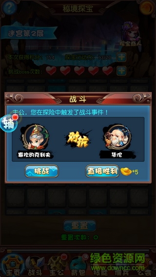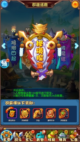 置身于秘境迷宫中进行探宝冒险,打怪、开宝箱、答题获得积分。