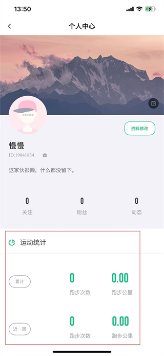 3、在个人中心的运动统计板块,即可查看累计、近一周的跑步次数和公里数等记录。
