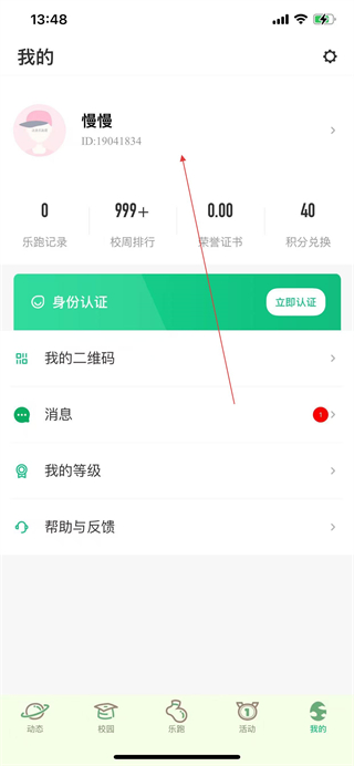 1、打开步道乐跑APP,点击导航栏我的,进入个人页面。