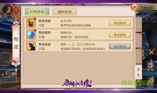 玩家每次参与帮派日常活动,都将获得一定的帮派分红,帮派分红每周结算一次。