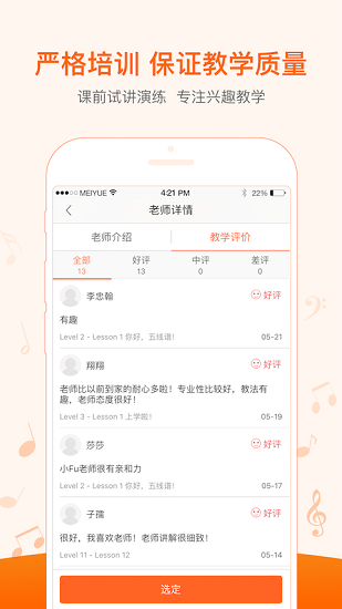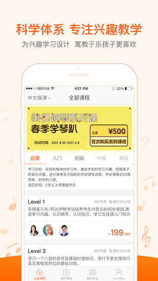 美悦钢琴学生版app是一款专为喜欢弹钢琴的小朋友提供钢琴学习服务的手机客户端,在这里,你可以选择适合自己的钢琴教程,跟着老师的要求在家一起弹钢琴,老师在课后也会布置一些作业,作业完成度会在系统上显示,感兴趣的朋友们赶紧来绿色资源网站下载吧!