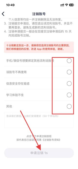 4、选择注销原因,点击申请注销,即可完成账号注销操作。