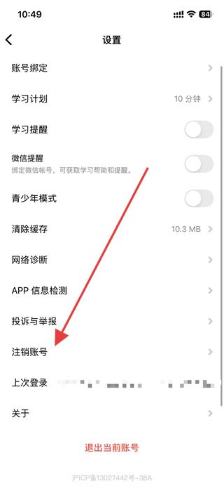 3、进入设置页面后,找到并点击下方的注销账号选项。