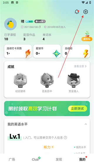 1、打开流利说英语APP,点击我的选项,进入个人页面。