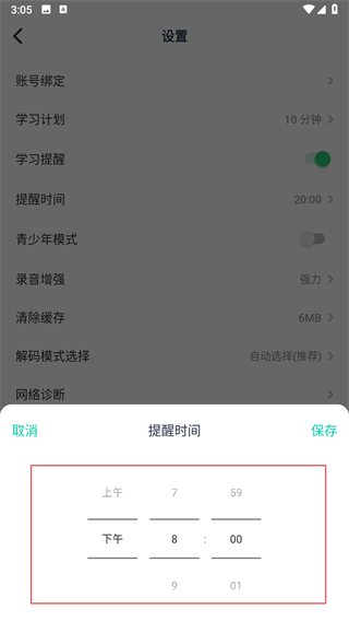 4、在提醒时间设置框中选择想要设置的时间,完成后点击保存。