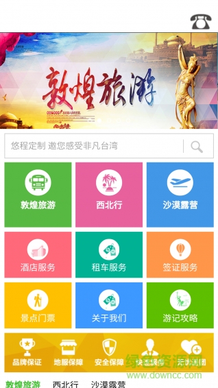 我公司以进一步拓展旅游市场,热情接待来自各地的团体旅游,会议安排,散客拼团,专列包机,国内组团,委托待定客房,代订飞机票等相关业务。我社以真诚合作,互惠互利,共同发展为原则,一切从客户的角度出发,打造品质旅游,为来甘肃旅游的爱好者留下一个愉快美好的敦煌印象之旅。