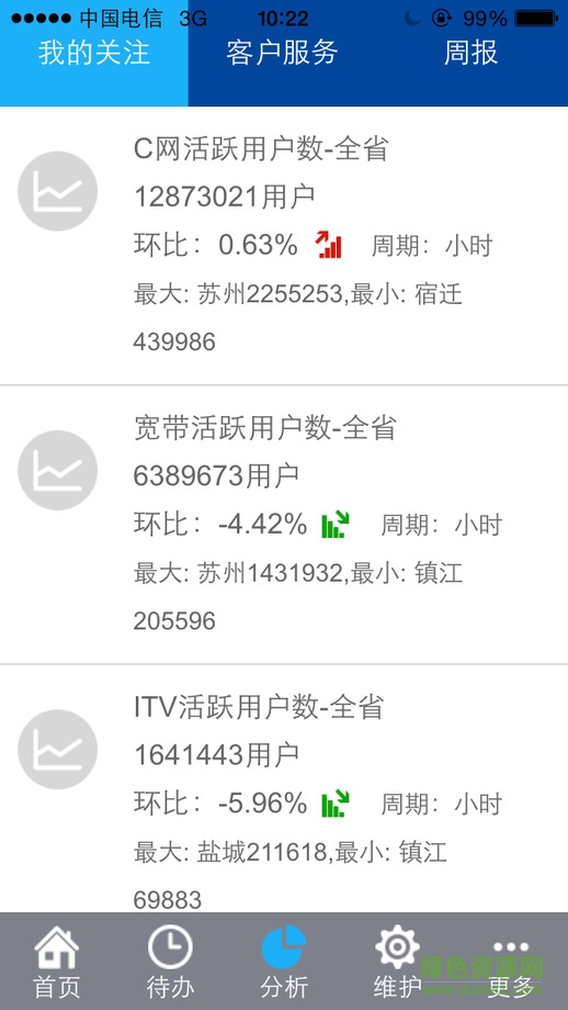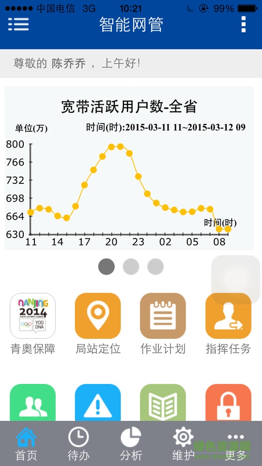 智能网管app是一款进行网络各项信息维护的手机软件,实现了各项功能安排,数据监测的任务,保证了网络正常运行,是网络运营维护人员使用的助手工具。快来绿色资源网下载江苏电信智能网管吧!