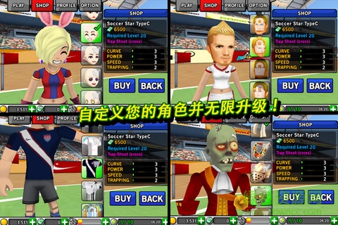 2、通过无限升级定制、创建自己的有趣的角色通过一系列广泛的服装和原来的面部特征,旨在使每位运动员独特;