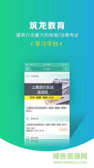 筑龙教育app是建筑师教育学习平台,想要考取建筑证书的朋友们注意了,筑龙教育有专业的老师团队做指导,历年真题加以演练,成功是百分之三十的天赋加上百分之七十的汗水,可以不限时间地点进行学习,有需要的用户欢迎来绿色资源网下载!