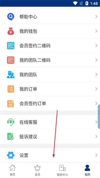 1、打开蓝卡医生端APP,进入首页,点击底部菜单栏中的服务中心选项。