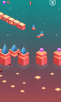 2、经典方块拼凑的世界,考验玩家手指反应速度的极限跳跃,解锁各种不同角色使用冒险,挑战极限分数,躲避一切障碍物,跑的更远!等待合适的时机;然后点击屏幕上跳;不脱落的冰块!