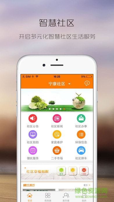 1.智慧生活:家政保洁、预约洗衣、预约挂号、社区陪护、社区团购拼货、垃圾分类、周边便民等,整合了市场主流手机应用,让便民服务贴心进社区。