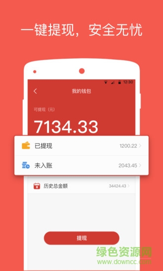 5.资金管理:订单收益展示,清晰管理账目;收益实时更新,订单完成及时到账;资金随时提现,保障交易现金流转