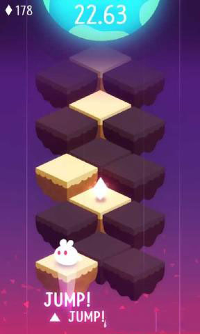 2、玩家要帮助一只迷失在星系的小白兔找到回家的路,通过点击不断跳跃前进,帮助小兔子跨越各种危险的岩石道路。
