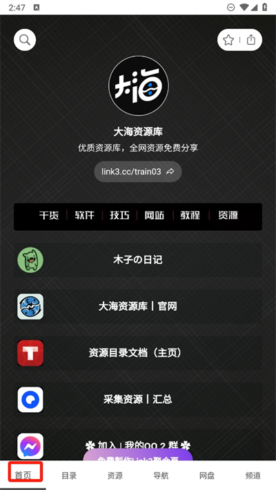 1、进入软件后可以在首页看到多个不同的资源库可以学选择,根据个人的需求选择不同内容;