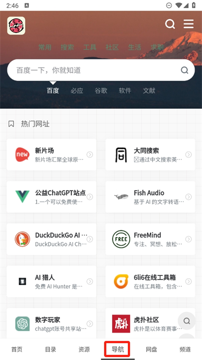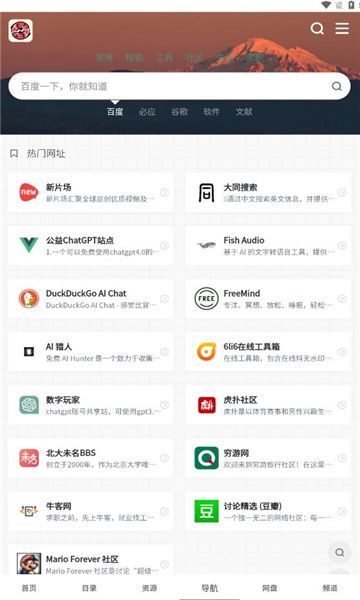 4、在导航栏目中可以输入各种网址进行内容的查看,还有一些当前热门搜索的网址一键点击直达网页。