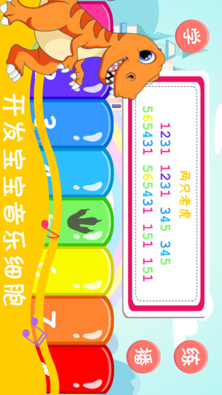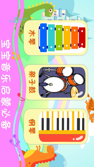 恐龙学音乐软件安卓版通过游戏化娱乐的方式让孩子可以快乐学音乐,歌曲资源丰富,包含多种乐器,可以从小就识别各种乐器,还有儿歌弹法教学,非常的实用,欢迎喜爱的朋友下载体验!