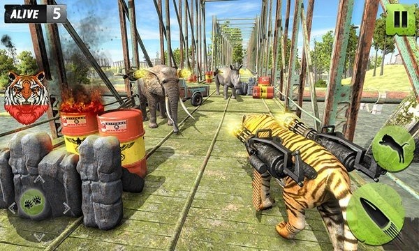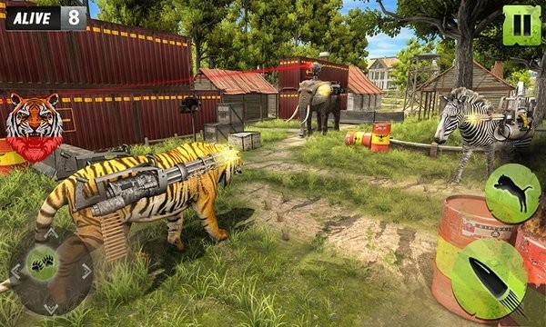 机器剑齿虎大战中,你可以给剑齿虎安装上各种武器装备,你需要带领你的剑齿虎军团走向胜利,敌人有斑马、有大象等等,难度非常高,运用老虎的优势去战胜对手吧!如果你感兴趣的话,欢迎来下载!