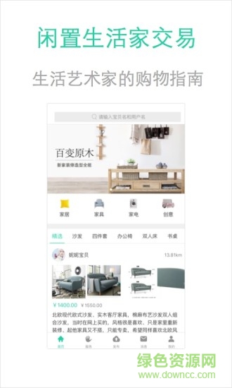 易舍居app是二手闲置家具交易平台,有非常多风格特异的家具,特别有老家具的感觉,让人觉得别有一番韵味,最具有创意的家居平台,还可以网友们一起分享创意心得,晒家居,价格适中,有兴趣的用户欢迎来绿色资源网下载!