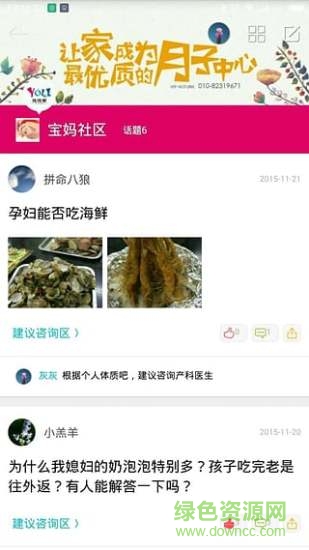 优优家软件是一款非常好用的月子服务手机app,可以学习最新的月子知识,可以在宝妈社区参与互动讨论,可以向专家进行咨询,欢迎喜爱的朋友到绿色资源网下载使用!